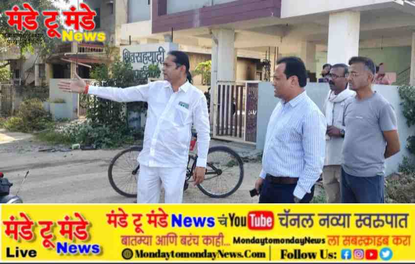 नशिराबाद, मंडे टु मंडे न्युज. डॉ. दीपक लोखंडे | – येथील साई समर्थ कॉलनी परिसरातील सांडपाण्याच्या गंभीर समस्येबाबत मंडे टु मंडे न्युज ने प्रसिद्धbकेलेल्या वृत्ताची प्रशासनाने तातडीने दखल घेतली आहे. या संदर्भात नगरपरिषद मुख्याधिकारी तसेच उपनगराध्यक्ष पंकज महाजन यांनी प्रत्यक्ष स्थळी भेट देऊन परिस्थितीची पाहणी केली.